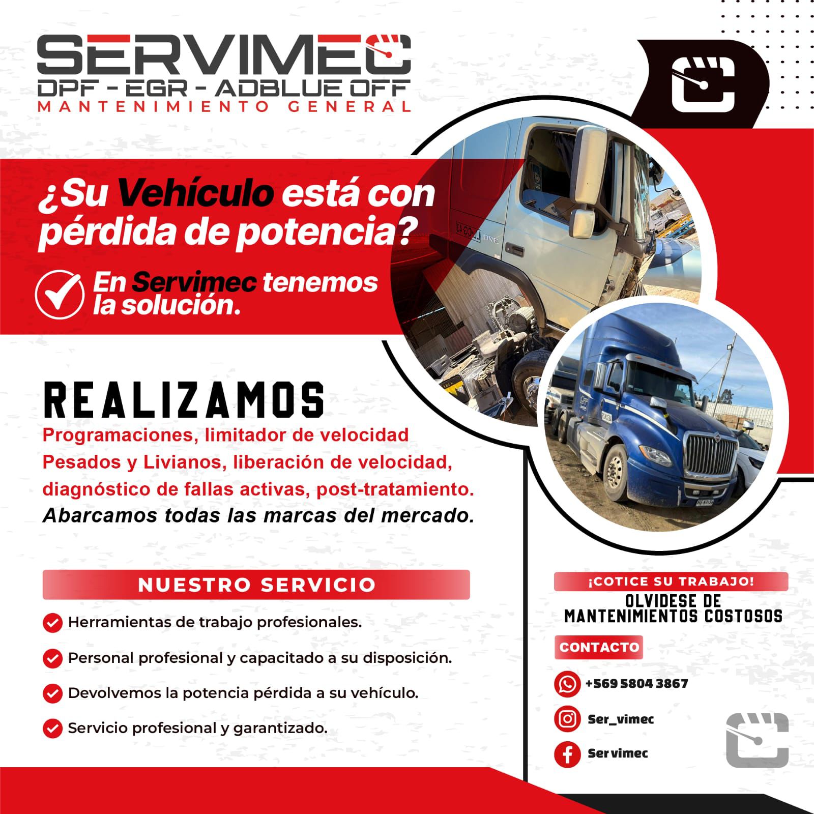 Atención en taller y también visita a terreno. Escríbanos y coordinamos de inmediato.